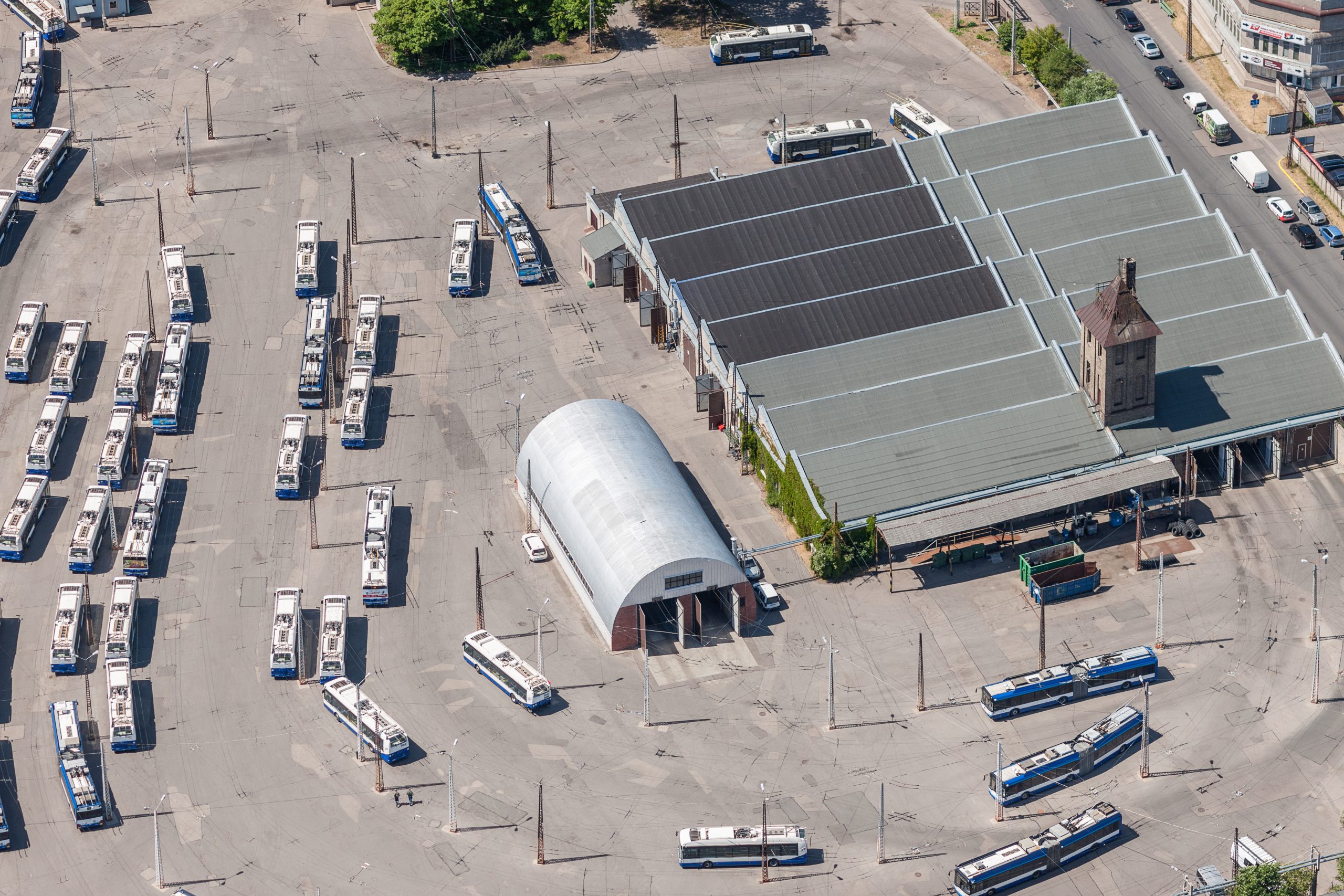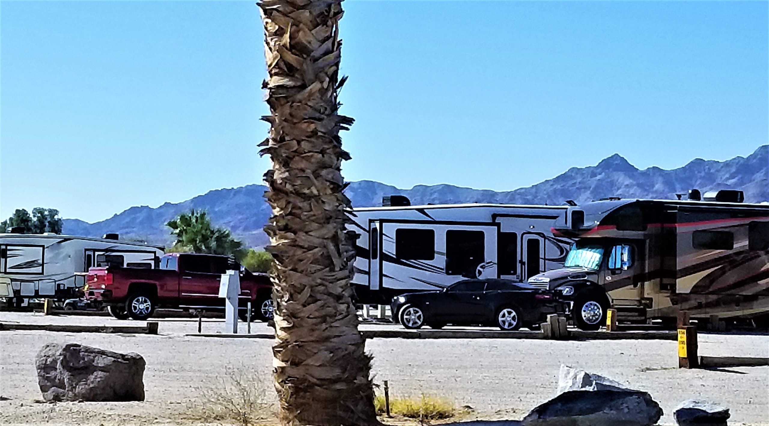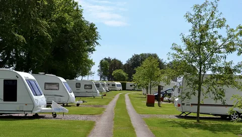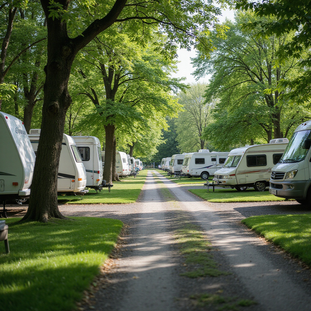 Here is an aerial view of RV vacation trailer in recreational vehicle parking camping area